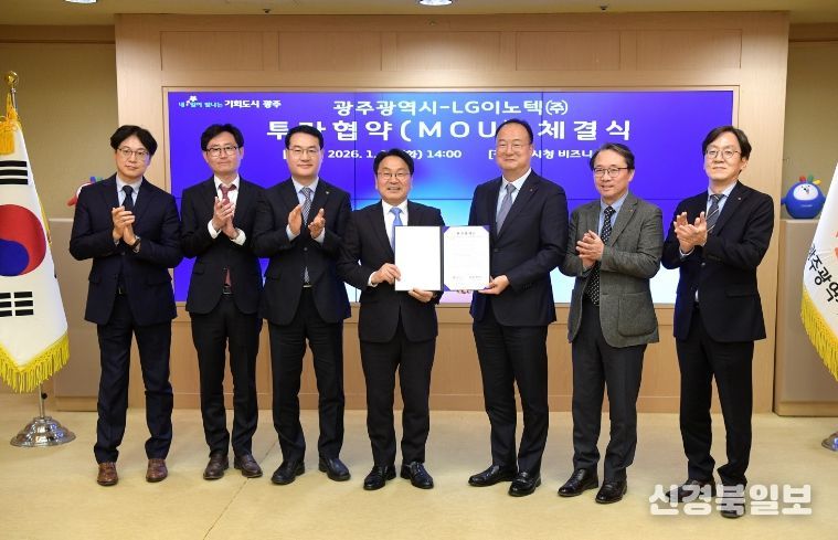 [ 신경북일보 ] 광주광역시와 LG이노텍은 13일 시청 비즈니스룸에서 ‘차량용 제어모듈 신규 생산라인 구축을 위한 투자협약’을 체결했다. 이번 협약은 2026년 새해 부강한 광주로의 힘찬 도약을 알리는 첫 신호탄이다.
