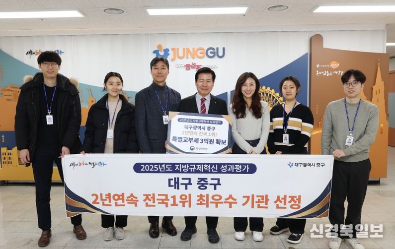 [ 신경북일보 ] 대구 중구는 행정안전부가 주관한 ‘2025년 지방규제혁신 성과평가’에서 2년 연속 최우수 기관으로 선정되며 규제혁신 선도 도시로서의 위상을 다시 한번 입증했다.