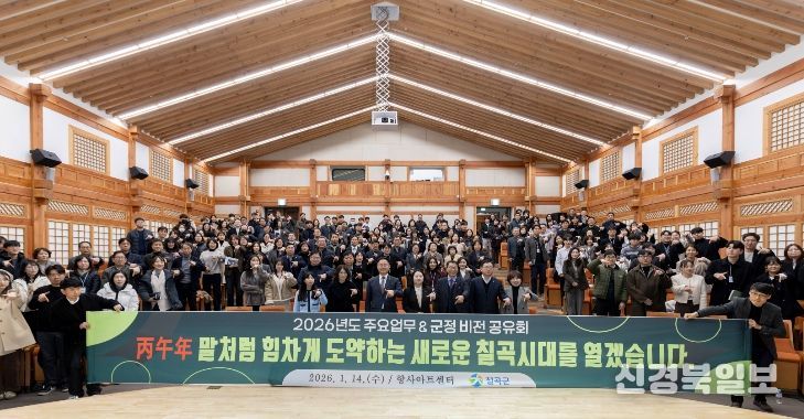 [ 신경북일보 ] 칠곡군은 지난 14일 향사아트센터에서 직원 200여 명이 참석한 가운데 ‘2026년도 주요업무 · 군정 비전 공유회’를 개최하여 부서별 비전과 핵심사업을 공유하고 소통하는 시간을 가졌다.