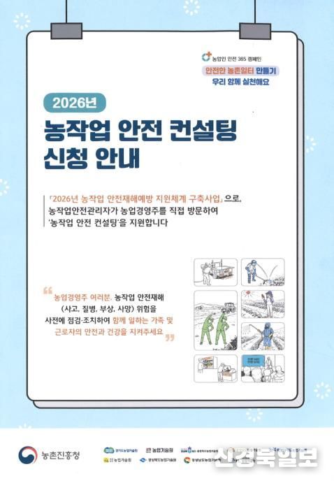 [ 신경북일보 ] 안동시는 농업 분야 중대재해 예방과 안전한 농작업 환경 조성을 위해 '2026년 농작업 안전재해예방 지원체계 구축사업'의 일환으로 ‘농작업 안전보건관리 컨설팅’ 참여농가를 모집한다고 1월 16일(금) 밝혔다.