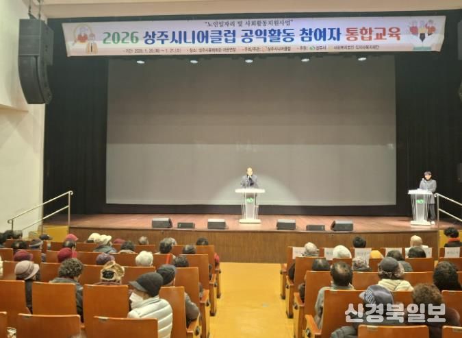 [ 신경북일보 ] 상주시니어클럽은 2026년 노인일자리 및 사회활동지원사업 참여자를 대상으로 1월 20일부터 21일까지 이틀간 상주문화회관에서 통합교육을 실시했다.