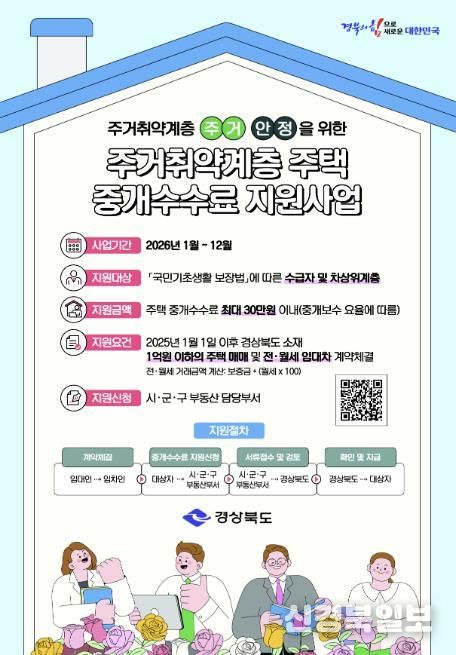 [ 신경북일보 ] 상주시는 주거 취약계층의 경제적 부담을 완화하고 안정적인 주거환경 조성을 위하여 2026년 1월부터 “주거 취약계층 주택 중개보수 지원사업”을 시행한다.