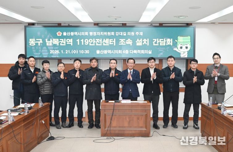 [ 신경북일보 ] 울산시의회 강대길 의원은 21일 의회 4층 다목적 회의실에서 주민, 소방본부, 동부소방서, 울산도시공사 관계자 등과 함께 ‘동구 남목권역 119안전센터 조속 설치’ 간담회를 가졌다.