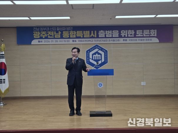 [ 신경북일보 ] 더불어민주당 주철현 국회의원(전남 여수시갑)은 28일, 국립순천대학교에서 ‘전남광주특별시’ 출범 과정에서 전남 동부권 산업의 역할과 경쟁력 강화를 논의하기 위한 '광주전남 통합특별시 출범 토론회'를 개최했다.
