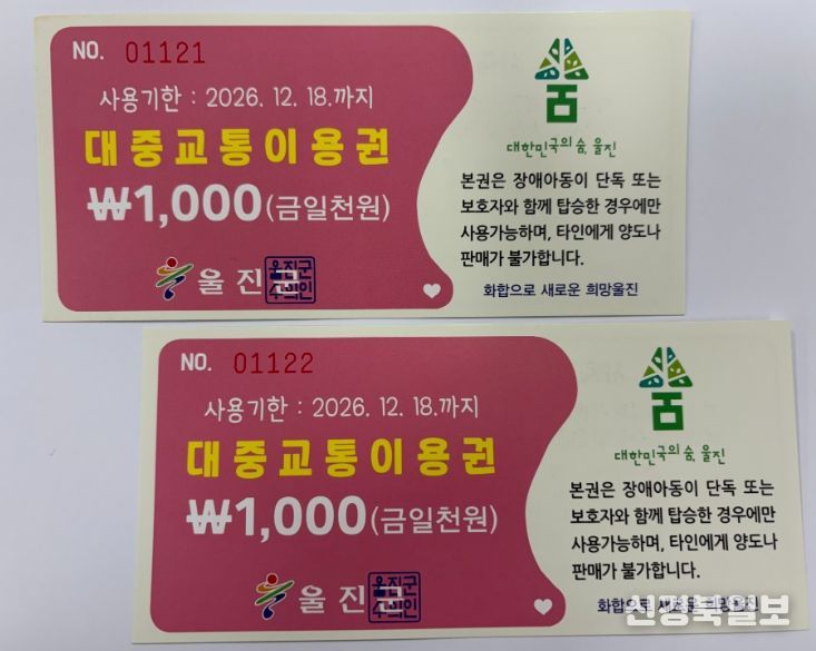지원 대상자는 1인당 월 6만 원의 대중교통 이용권을 수령한 후 관내 지정 대중교통업체인 개인택시, 울진택시, 동해택시, 교통약자이동지원센터에서 이용권 한도 내로 2026년 12월 18일까지 사용할 수 있다.