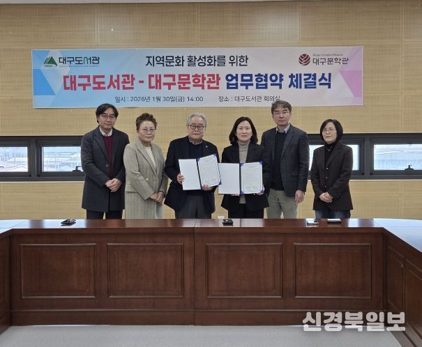 [ 신경북일보 ] 대구도서관과 대구문학관은 시민을 위한 독서문화 분야 협력을 강화하고 상호 발전을 도모하기 위해 1월 30일 오후 2시, 대구도서관 회의실에서 업무협약을 체결했다.