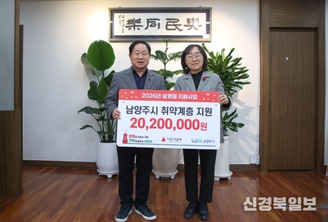 [ 신경북일보 ] 남양주시는 30일 경기북부사회복지공동모금회로부터 ‘2026년 설명절 지원사업’ 배분금 2,020만 원을 전달받았다고 밝혔다.