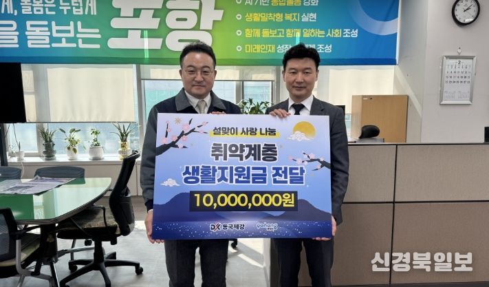 [ 신경북일보 ] 포항시는 2일 동국제강이 설 명절을 맞아 지역 소외계층을 지원하기 위해 포항사랑상품권 1,000매(1,000만 원 상당)를 기탁했다고 밝혔다.