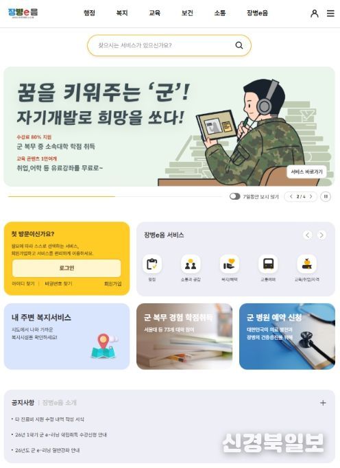 [ 신경북일보 ] 국방부는 장병들을 위한 국방 서비스 통합 플랫폼인 '장병e음'의 구축을 완료하고, 2026년 2월 4일부터 정식 서비스를 개시한다.