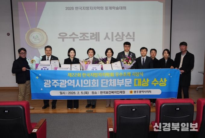 [ 신경북일보 ] 광주광역시의회는 5일 청주시 한국보건복지인재원에서 열린 제22회 한국지방자치학회 주관 우수조례 시상식에서 단체 부문 대상을 비롯해 개인·공무원 부문에서도 우수상 등을 수상했다.