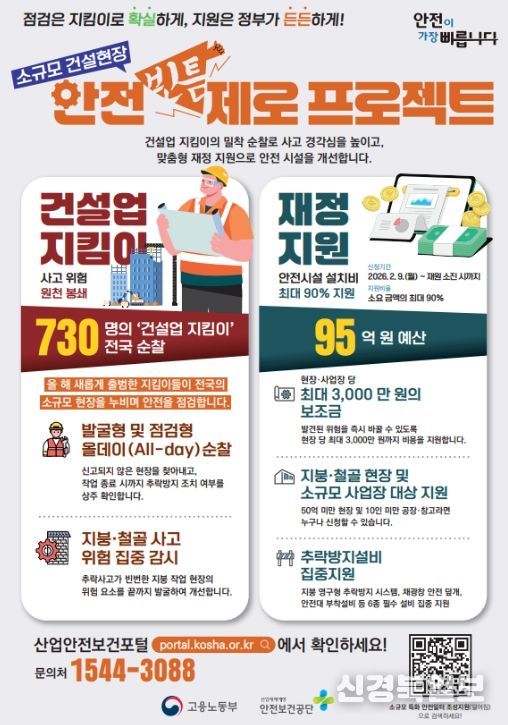 [ 신경북일보 ] 고용노동부 한국산업안전보건공단(KOSHA)은 건설현장 안전 관리를 위해 현장 특성에 맞춘 이원화된 산재예방 점검 및 지원에 들어간다.