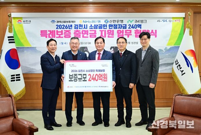 [ 신경북일보 ] 김천시는 관내 소상공인 경영 안정자금 지원을 위해 경북신용보증재단, NH농협은행, 신한은행, iM뱅크와 협약을 맺고 총 240억 원 규모의 소상공인 특례 보증 지원에 나선다고 9일 밝혔다.
