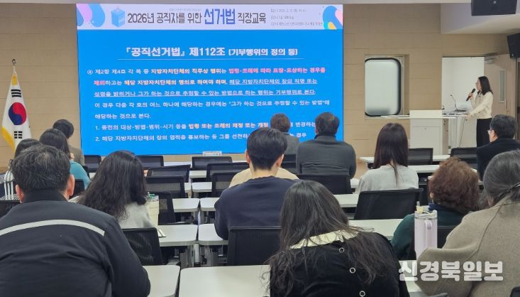 이번 교육은 공직자의 선거중립 의무 준수와 선거관여행위 금지 교육을 통해 선거기간 중 공직자의 일상 업무와 행위에서 발생할 수 있는 위법·부당 사례를 사전에 예방하고, 공정하고 청렴한 선거문화 조성에 기여하기 위해 마련됐다.
