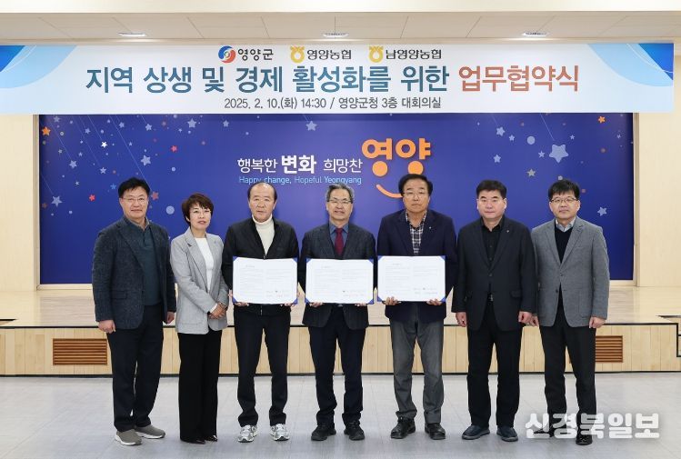 [ 신경북일보 ] 영양군은 2026년 2월 10일 군청 대회의실에서 영양농협(조합장 양봉철), 남영양농협(조합장 박명술)과 함께 농촌 기본소득 지역 상생 및 경제 활성화를 위한 업무협약(MOU)을 체결했다.