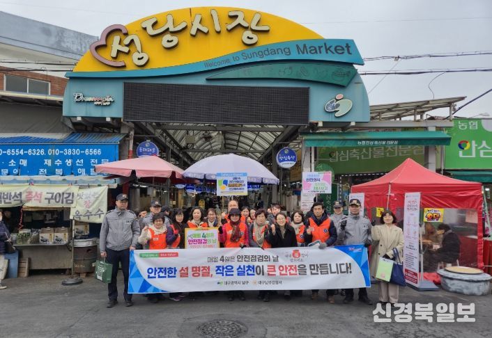 [ 신경북일보 ] 대구 남구는 2월 10일 대명4동 청춘골목 조성지 일원의 성당시장에서 설 명절을 앞두고 지역 주민의 안전의식을 높이기 위한 안전문화운동 캠페인을 실시했다.