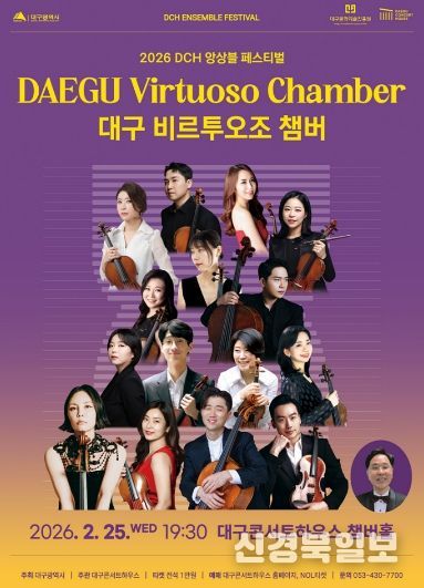 [ 신경북일보 ] 대구문화예술진흥원 대구콘서트하우스가 ‘2026 DCH 앙상블 페스티벌’의 무대 중 하나로 지역을 대표하는 현악 앙상블 대구 비르투오조 챔버의 공연을 오는 2월 25일 선보인다.