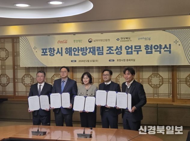 [ 신경북일보 ] 경상북도산림환경연구원은 2월 11일, 포항시청에서 한국 코카-콜라, 환경재단, 남부지방산림청, 포항시와 포항시 흥해읍 용한리 일원 해안방재림 조성사업을 위한 업무협약을 체결했다.