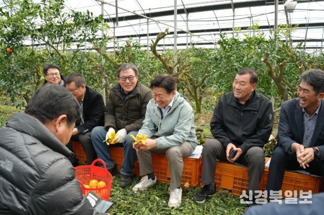 [ 신경북일보 ] 제주 만감류 가격이 2월 들어 뚜렷한 회복세를 보이는 가운데, 오영훈 제주도지사가 11일 한라봉 농가를 찾아 현장 목소리를 청취했다.