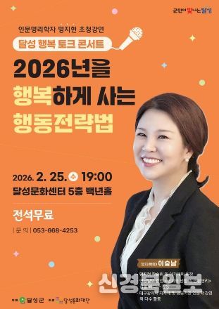 [ 신경북일보 ] (재)달성문화재단은 오는 2월 25일 오후 7시, 달성문화센터 백년홀에서 2026년 새해 맞이 ‘달성 행복 토크 콘서트’를 개최한다고 밝혔다.
