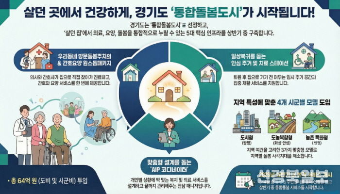 [ 신경북일보 ] 경기도가 화성시, 광명시, 안성시, 양평군 등 4개 시군을 ‘통합돌봄도시’로 선정해 의료-요양-주거 연계 5대 인프라를 상반기 중으로 구축한다.