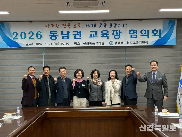 [ 신경북일보 ] 청도교육지원청은 2월 24일 신화랑풍류마을에서 경상북도 동남권 8개 지역 교육장이 참석한 가운데 ‘동남권 교육장 협의회’를 개최했다.