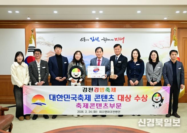 [ 신경북일보 ] 김천시는 지난 2월 24일 서울 용산 피스앤파크 컨벤션에서 열린 ‘제14회 대한민국 축제콘텐츠 대상’에서 축제콘텐츠 부문 대상을 수상했다.