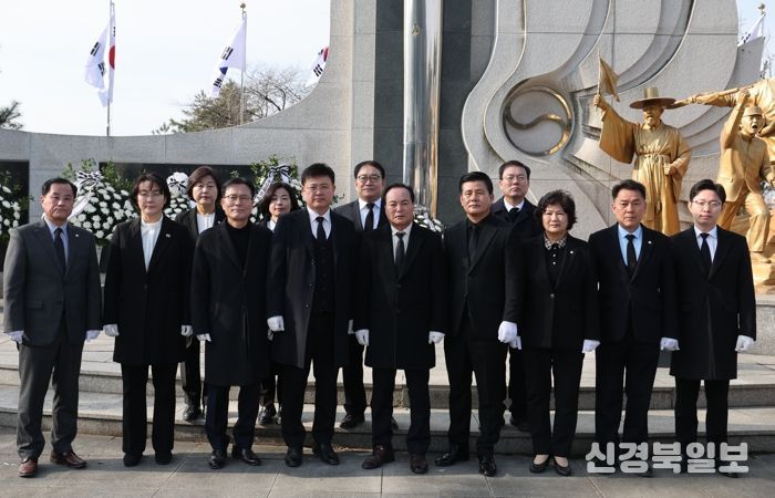 이날 김현기 의장을 비롯한 이영신 부의장과 상임위원회 위원장들은 삼일공원 항일독립운동 기념탑을 시작으로 상당공원 한봉수 의병장 동상, 예술의전당 신채호 선생 동상 등을 차례로 참배했다.