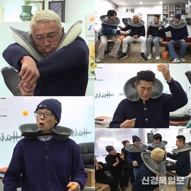 이날 유재석, 유연석, 추성훈, 김동현은 피지컬을 총동원한 한판 승부에 나선다. 이번 미션은 미용실 중화받침대로 탁구공을 받는 ‘핑퐁! 넥 캐치’. 네 사람은 목도리도마뱀을 연상케 하는 턱받이 장착 비주얼로 시작부터 웃음보를 자극한다. 이때 추성훈은 공만 띄웠다 하면 온몸으로 돌진, 야생 사자 같은 몸놀림으로 미용실을 발칵 뒤집는다. 급기야 추성훈이 공을 쫓던 나머지 카메라를 와락 덮쳐버리자, 유재석은 “오늘 조심해. 몇 명 박을 수도 있어”라며 안전을 당부해 폭소를 유발한다.