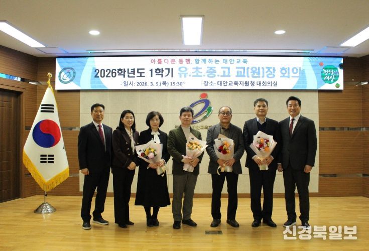 [ 신경북일보 ] 충청남도태안교육지원청은 3월 5일 태안교육지원청 대회의실에서 관내 유‧초‧중‧고 교장(원장), 교육지원청 담당자 60명이 참석한 가운데 2026학년도 1학기 유‧초‧중‧고 교장(원장) 회의를 개최했다.