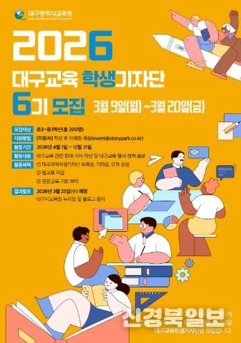 [ 신경북일보 ] 대구시교육청이 3월 9일부터 20일까지 2주 동안 ‘2026년 대구교육기자단’을 모집한다.