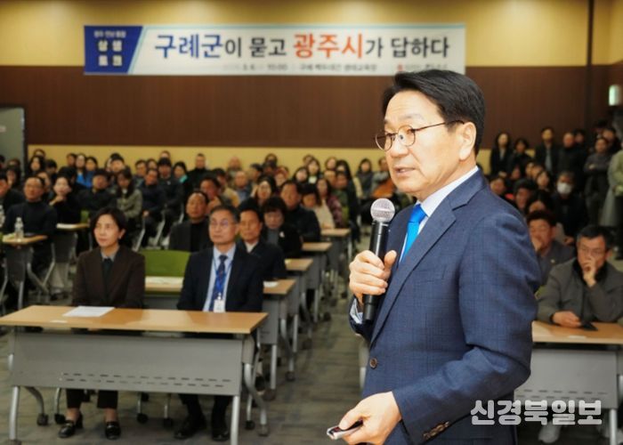 [ 신경북일보 ] 광주광역시는 6일 구례군 백두대간생태교육장 세미나실에서 ‘광주전남 통합 구례군 상생토크’를 열고, 구례 발전 전략과 통합 이후 변화에 대해 구례군민들과 소통했다.