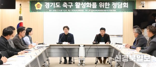 [ 신경북일보 ] 경기도의회 문화체육관광위원회 황대호 위원장(더불어민주당, 수원3)이 6일 경기도축구협회 이석재 회장을 비롯한 협회 관계자들 및 도내 소재 초중고 및 클럽 학생 축구팀 감독들과 경기도 학생 축구선수 지원 정담회를 가졌다. 정담회는 경기도축구협회 측에서 경기도 축구 활성화와 학생 축구선수 지원 활성화를 위한 정책 제안을 청취하고 실질적 지원 방안을 마련하기 위해 진행됐다.