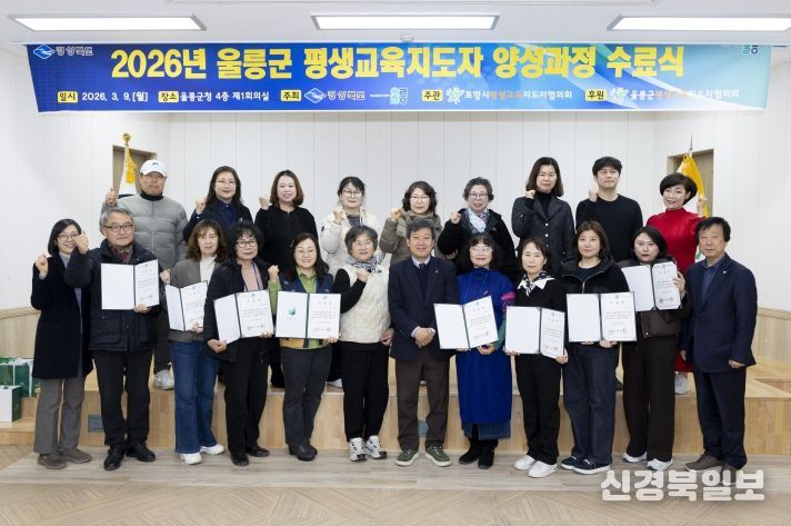 [ 신경북일보 ] 울릉군과 포항시 평생교육지도자협의회가 9일 오전 울릉군청 4층 제1회의실에서 ‘2026년 울릉군 평생교육지도자 양성과정’ 수료식을 개최했다. 이번 행사는 4일간 진행된 교육 과정을 마무리하는 자리였다.