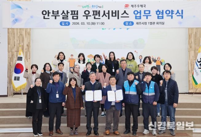 [ 신경북일보 ] 제주시는 3월 10일 시청 1별관 회의실에서 제주우체국(국장 오달규)과 ‘안부살핌 우편서비스’ 업무 협약을 체결했다.