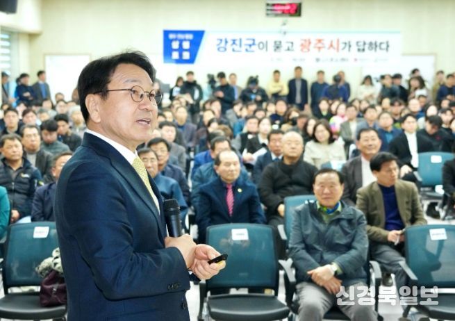 [ 신경북일보 ] 광주광역시는 10일 강진군에서 ‘광주·전남 통합 강진군 상생토크’를 열고, 통합 이후 강진 발전 방향과 상생 협력 방안에 대해 군민들과 의견을 나눴다.