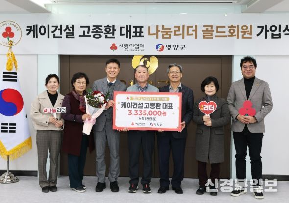 [ 신경북일보 ] 영양군은 3월 12일 군청 소회의실에서 케이건설 고종환 대표의 '나눔리더 골드회원' 가입식을 경북사회복지공동모금회와 공동으로 진행했다.