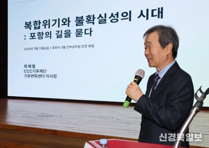 [ 신경북일보 ] 포항시는 13일 시청 대회의실에서 간부공무원 100여 명이 참석한 가운데 ‘복합위기와 불확실성의 시대:포항의 길을 묻다’를 주제로 3월 조찬포럼을 열었다.