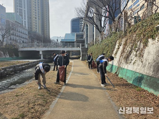 [ 신경북일보 ] 대구공공시설관리공단 동부사업처가 3월 16일 범어천 일대에서 하천 정화활동을 진행했다.
