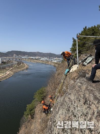 [ 신경북일보 ] 대구119특수구조대가 해빙기 산악사고에 대비해 지난 3월 16일 달서구 궁산 일대에서 특별구조훈련을 진행했다.