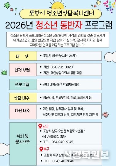 유성재 포항시청소년상담복지센터장은 "위기 상황에 놓인 청소년들이 건강하게 성장할 수 있도록 현장 중심의 상담 지원을 지속적으로 확대해 나가겠다"고 밝혔다.