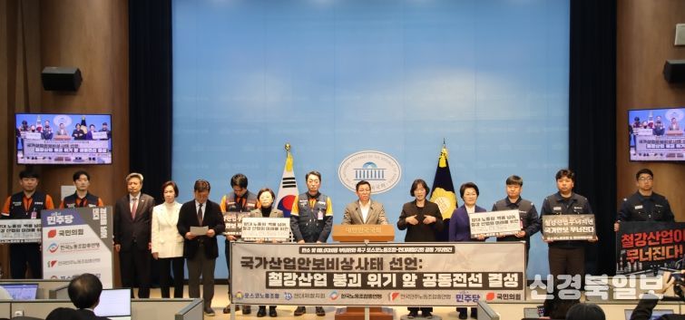 [ 신경북일보 ] 국민의힘 이상휘 의원(포항 남·울릉)은 19일 국회 정론관에서 포스코·현대제철의 한국노총과 민주노총 소속 노동자들과 함께 ‘대한민국 철강산업 위기 극복을 위한 공동 기자회견’을 열었다.