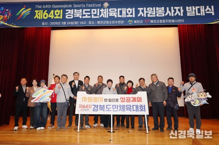 [ 신경북일보 ] 예천군종합자원봉사센터는 24일 오후 예천군청소년수련관에서 제64회 경북도민체육대회 자원봉사자 발대식을 열었다. 이번 행사는 대회 지원과 자원봉사자들의 소속감 고취를 목적으로 마련됐다.