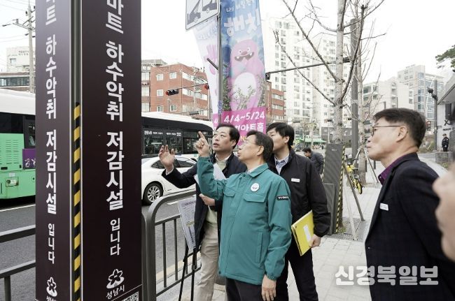 신상진 성남시장도 점검에 나서 3월 26일 오전 신흥2동, 중앙동, 은행2동에 있는 스마트 하수 악취 저감시설을 차례로 찾아가 살펴봤다.