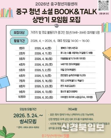 [ 신경북일보 ] 대구 중구청년지원센터 잇플이 4일부터 6월 20일까지 약 3개월 동안 '중구 청년 소셜 BOOK&TALK(북앤톡) 프로그램'을 진행한다.