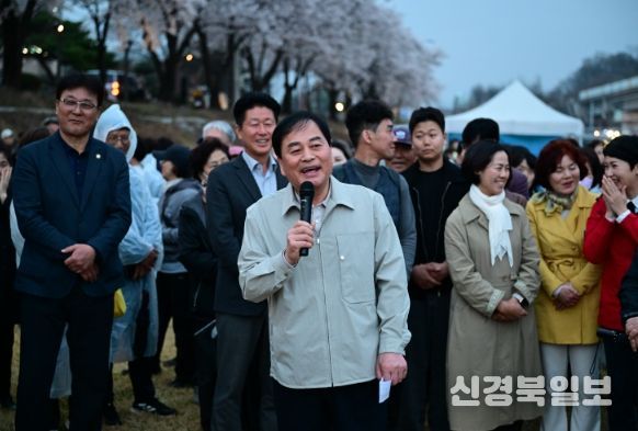[ 신경북일보 ] 김천시가 4월 1일 저녁 조각공원 앞 둔치에서 시민 2,000여 명이 참석한 가운데 '제12회 직지사천 벚꽃길 걷기 및 식목일 기념 나무 나누어주기 행사'를 개최했다.