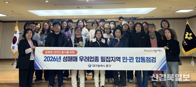 [ 신경북일보 ] 대구 중구는 동성로와 종로 일대의 유흥업소와 마사지 업소를 대상으로 민관이 함께 참여하는 성매매 우려업종 합동 점검을 지난 2일 진행했다.