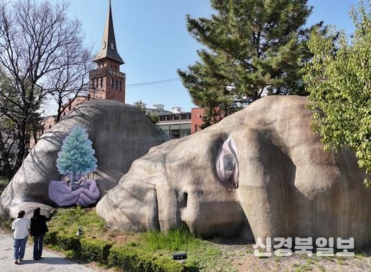 [ 신경북일보 ] 대구 달서구가 선사문화 상징물 '이만옹'을 활용해 자연과 세대 간의 공존을 주제로 한 상징 이미지를 선보였다. 이번에 공개된 퍼포먼스는 달서구 마스코트인 달수, 달희, 이만손이 함께 편백나무를 심는 장면을 중심으로 구성됐다.