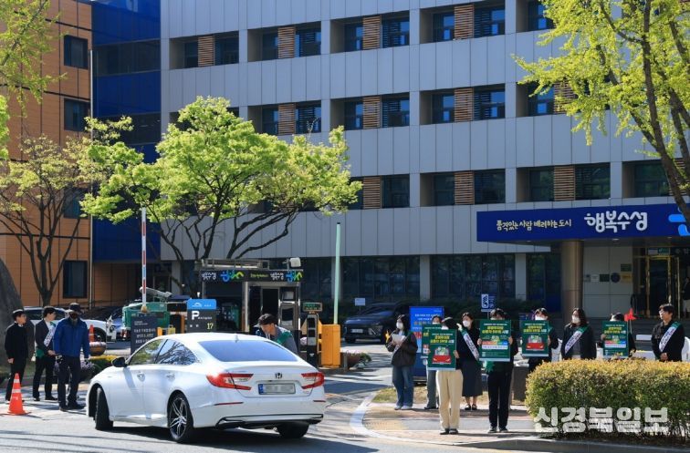 [ 신경북일보 ] 대구 수성구는 최근 원유 수급 불안정에 따른 에너지 위기 상황에 대응해 공영주차장 승용차 5부제 정책을 시민들에게 알리기 위한 홍보 캠페인을 진행했다.