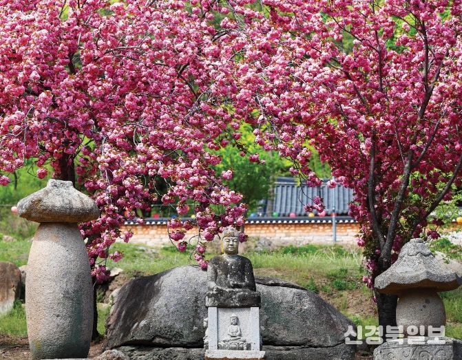 [ 신경북일보 ] 벚꽃이 떨어져 아쉬움이 남는 4월 중순, 경상북도 경산시 하양읍에 위치한 천년고찰‘환성사’가 화사한 연분홍빛 겹벚꽃으로 물들며 전국의 상춘객들을 유혹하고 있다.