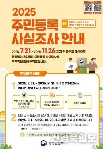 [ 신경북일보 ] 부평구는 오는 11월 26일까지 주민등록지와 실거주지의 일치 여부를 확인하기 위한 ‘2025년 주민등록 사실조사’를 실시한다.
